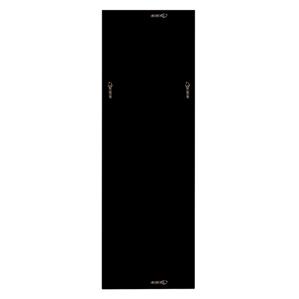 Perfect for adding drama to your space, this floor mirror features elegant beveled edges and a glossy black frame trimmed in gold leaf. D-rings are affixed to the back of the mirror so it is ready to hang in either a horizontal or vertical orientation.