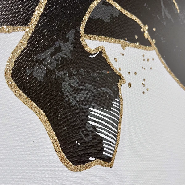 - Hand-stretched giclée print on canvas with gold glitter embellishments.