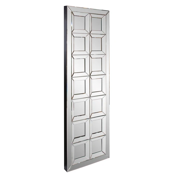 Featuring faceted, square mirrors arranged in a windowpane style, this mirror makes a striking focal point in any room. D-rings are affixed to the back of the mirror so it is ready to hang in a horizontal or vertical orientation.