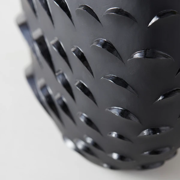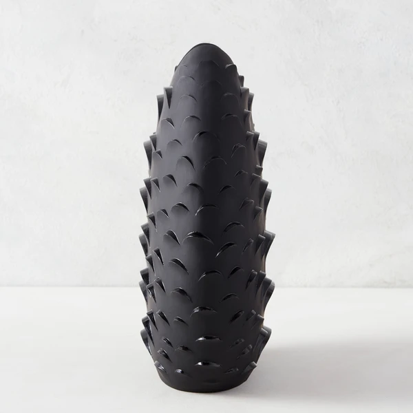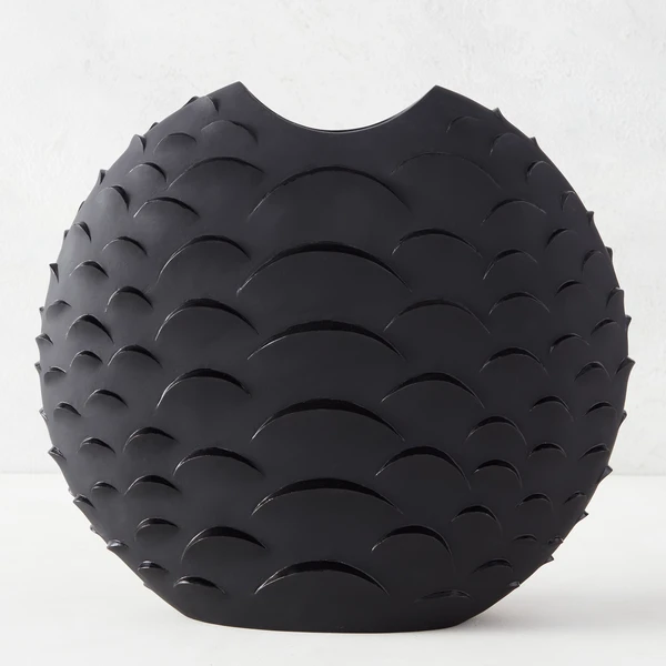 A stunning accent even when it’s not holding blooms or branches, this floor vase is made from lightweight resin with a matte black finish and textural scalloped design reminiscent of snake scales.