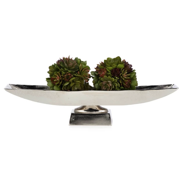 Handsomely hand-cast from aluminum and finished with nickel plating, our Collins Bowl stands out as an exceptional decorative piece. For added dimension and visually interest, our Collins Bowl sits atop a rectangular pedestal base. Designed to celebrate refinement and simplicity, fill the bowl with ornamental objects or simply enjoy it for its luminous beauty.