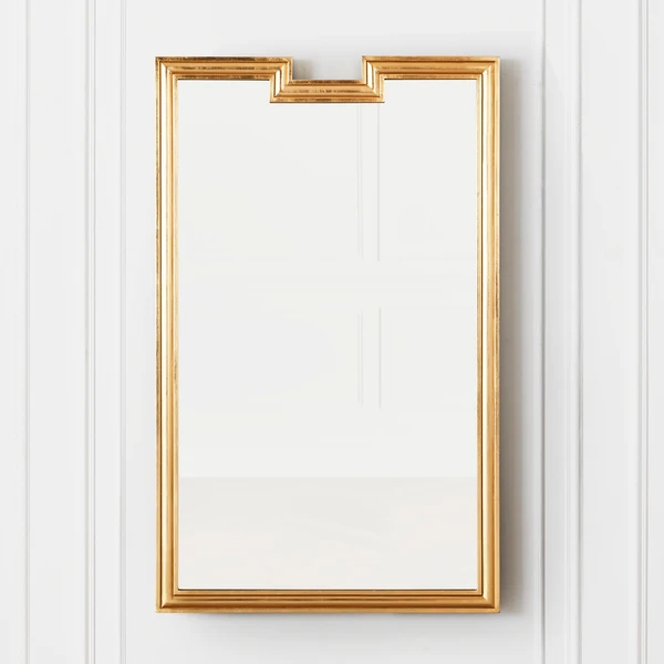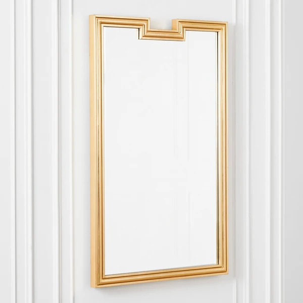 Designed with a notched top and bright gold finish, this wall mirror brings eye-catching elegance to any room.