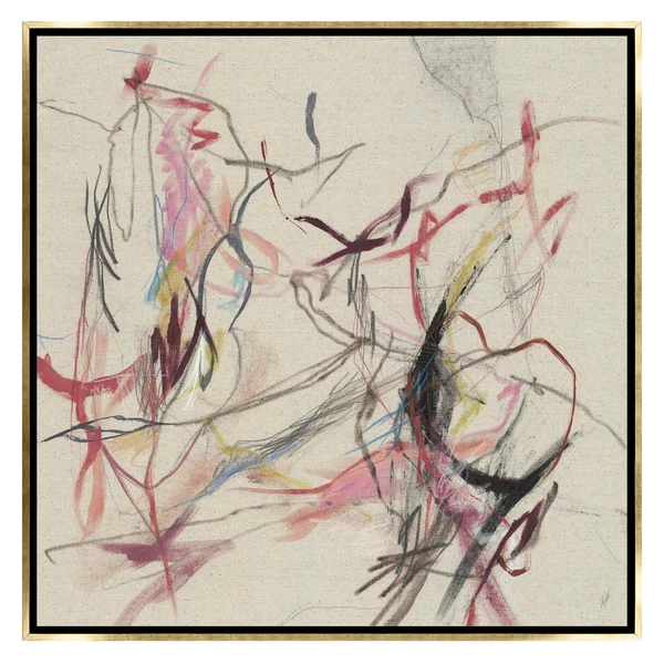 This impressive abstraction from artist Kelly O’Neal adds a modern note and hint of color to your wall. Printed on canvas, this piece is displayed in a gold floater frame.