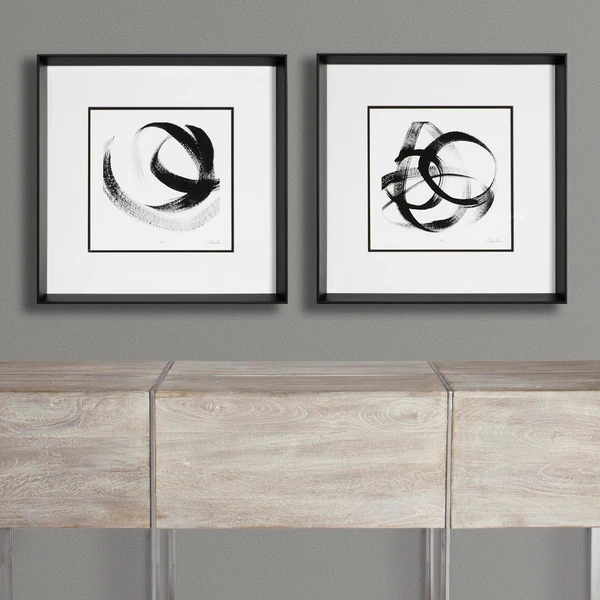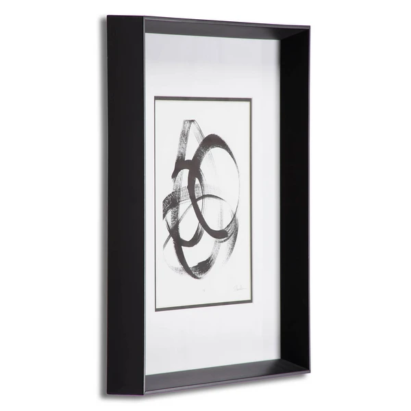 Striking in black and white, this limited-edition abstraction from artist Sharon Chandler is set off with a white mat and displayed in a black frame.