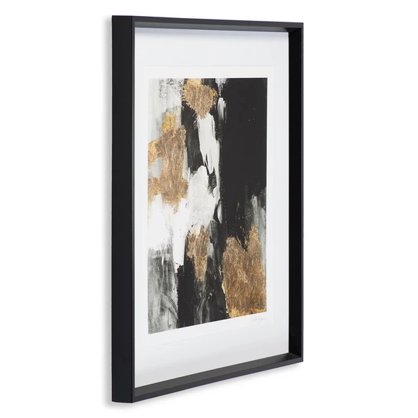 This limited-edition abstraction from artist Victoria Barnes brings a captivating modern note to your wall. Printed on archival paper with hand-applied embellishments, this piece is matted and displayed in a black frame.