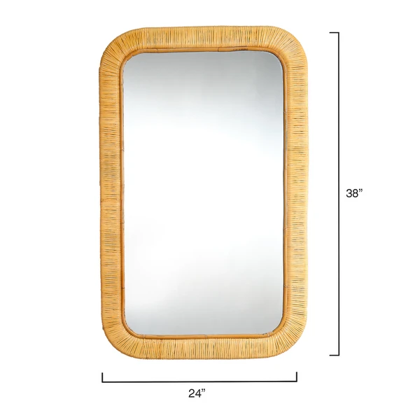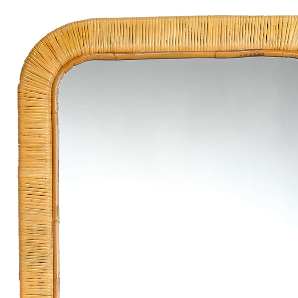 Our Kai Mirror is a split rattan wrapped, rounded corner rectangular mirror in natural rattan finish. Kai is reminiscent of 50’s coastal glam.