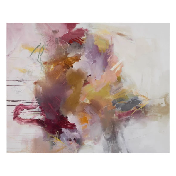 This beautifully layered abstraction from artist Jean Kenna showcases soft washes of blush and plum hues. Printed on gallery-wrapped canvas with a hand-applied image brush gel finish for added texture. Hangs both vertically and horizontally. Unframed.