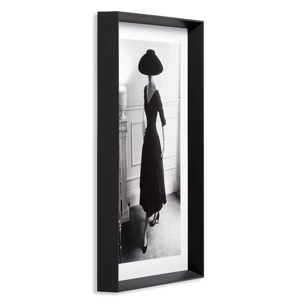 - Giclee print on fine art paper, set under glass in a solid wood frame with matte black finish.