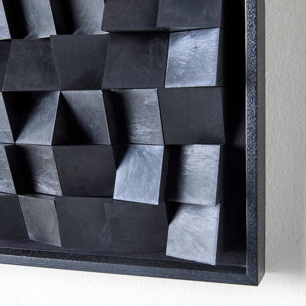 Create a space for wall decor that speaks to you. Nightfall is a conversation starter for sure. This abstract arrangement of cut black blocks is set in a low-profile black frame and will add visual interest to any wall.
