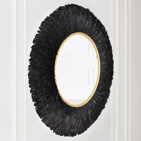 Perfect for adding texture and drama to your wall, this mirrorās frame is embellished with lush feathers and finished with a gleaming gold inner border.