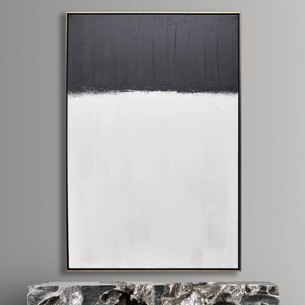 Bold brushstrokes in black and white add an incredible element of texture to this original work by artist Beverly Fuller. Painted on canvas, this piece is displayed in a gold floater frame.