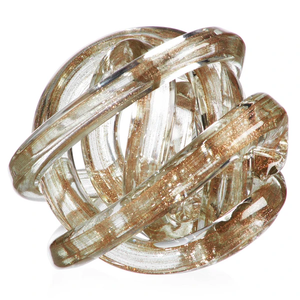 The addition of unique art glass pieces elevates the style of any decor. This Glass Knot is crafted of hand blown, twisted and braided glass.