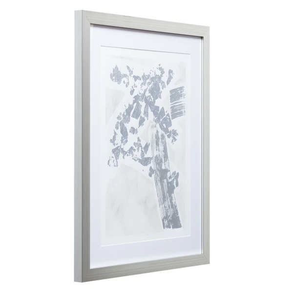 This impressively layered work from artist June Vess adds an abstract, modern note to your wall. Printed on fine-art paper with hand-applied silver and white paint embellishments, this piece is matted and displayed in a brushed silver frame. Each print is plate signed and hand-numbered.