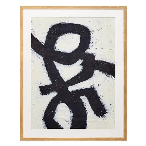 Bold in black and white, this abstraction from artist June Erica Vess is ideal for bringing a modern note to your wall. Printed on paper, this piece is matted and displayed in a natural wood frame.